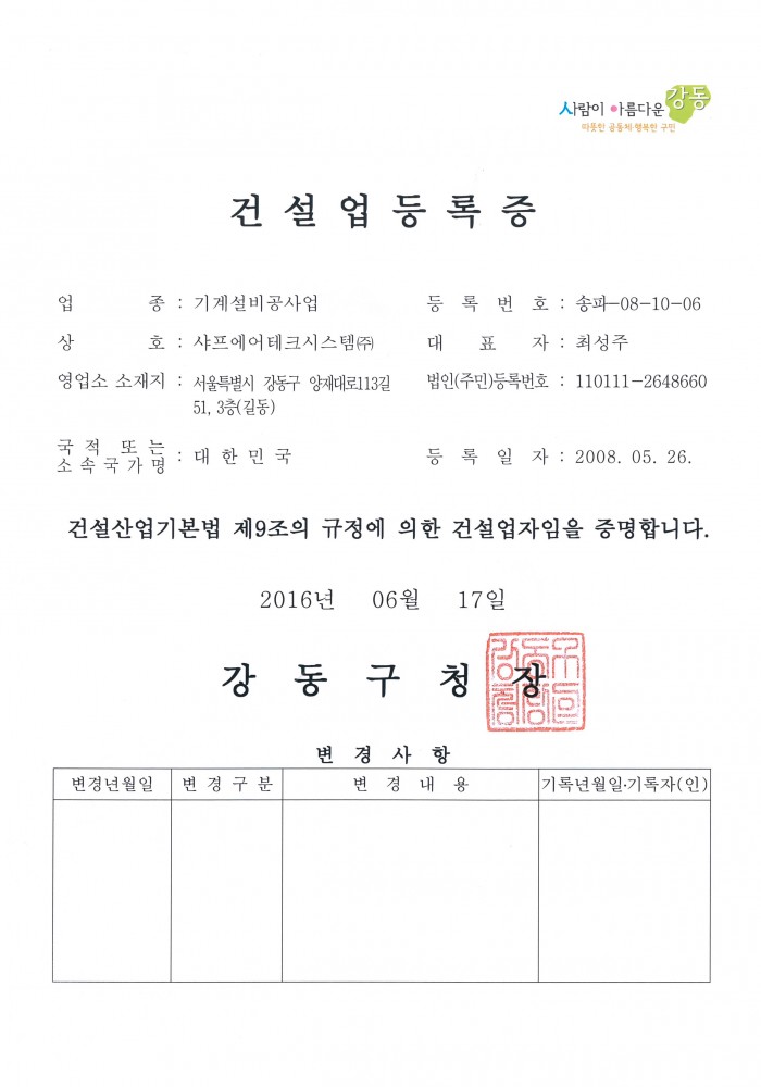 샤프에어테크시스템 | 서울특별시 강동구 양재대로113길 51, 3층 (길동, 우성아트빌)