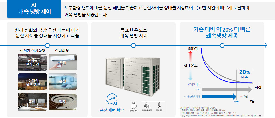 사용자의 냉방운전 패턴 학습으로 기존 대비 20% 더 빠르게 냉방 성능을 제공합니다.